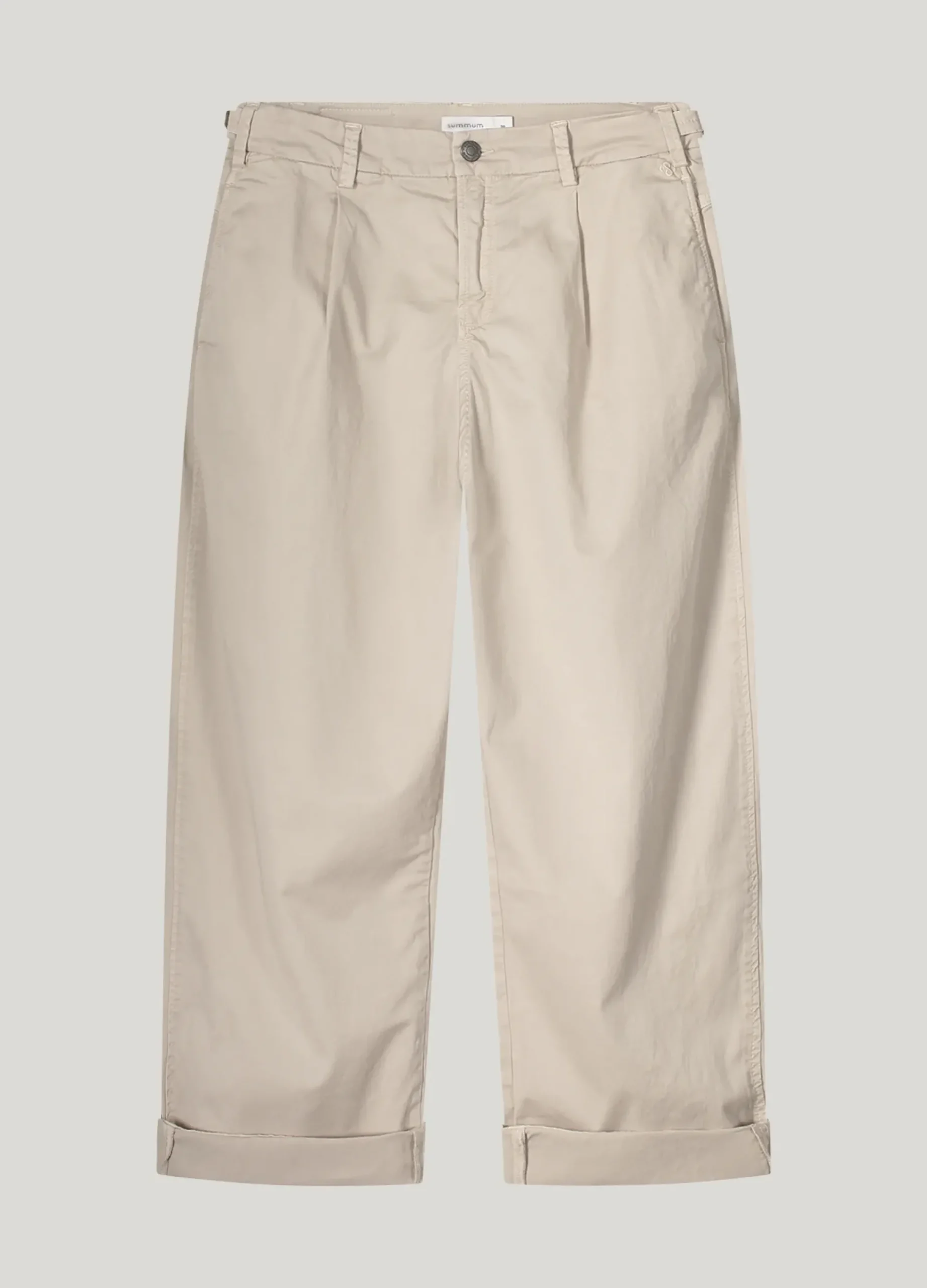These chinos have cocoon-shaped legs and are made of a soft crispy fabric. The flap pockets with press stud, pleats in the waistband and dividing seams create a silhouette that fits nicely on the body.