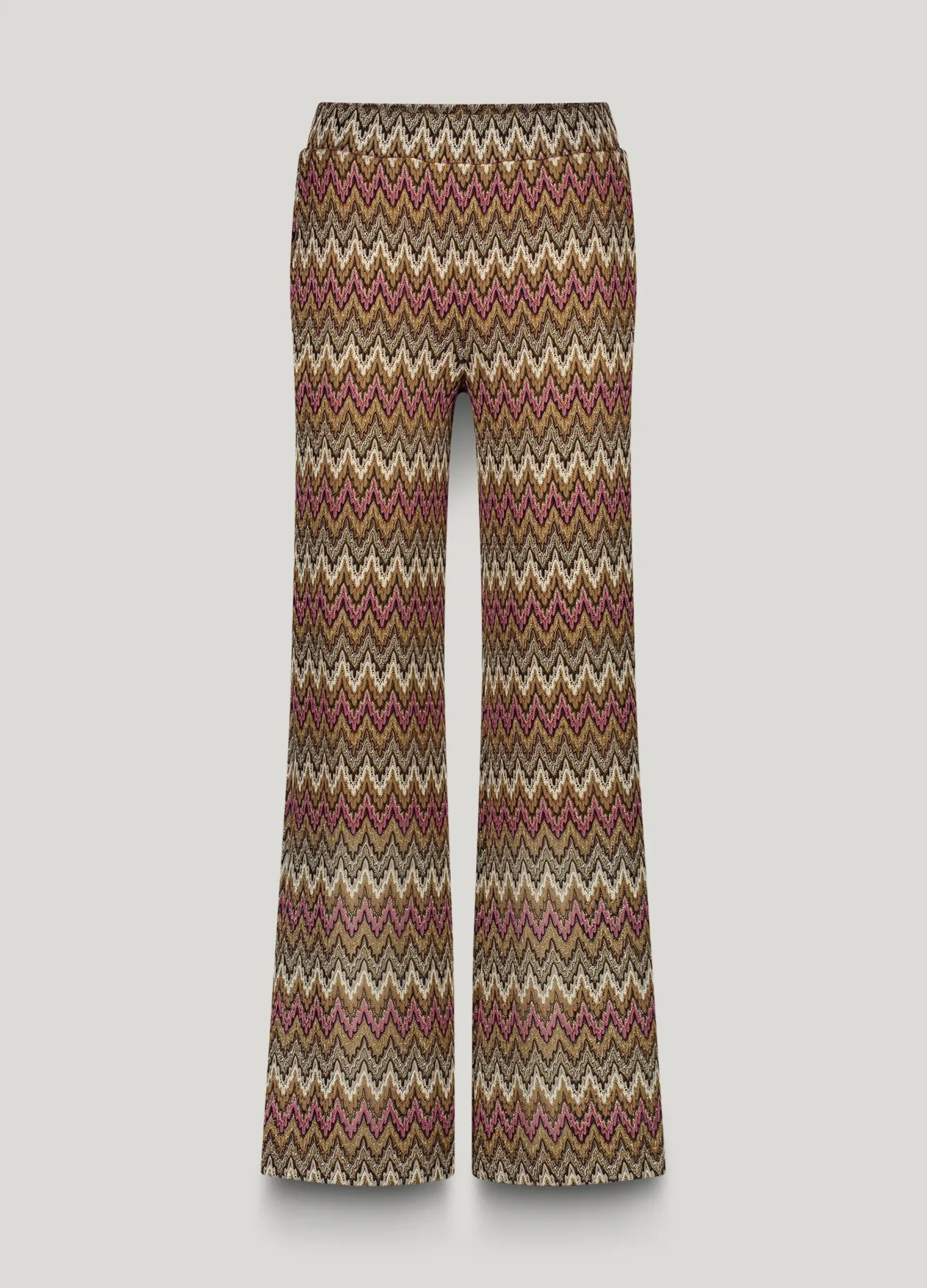 These loose-fitting jersey trousers have a woven-in multicolour zigzag pattern with lurex for a subtle shimmer. The lightweight flared trousers have a comfortable elasticated waistband and slit pockets.