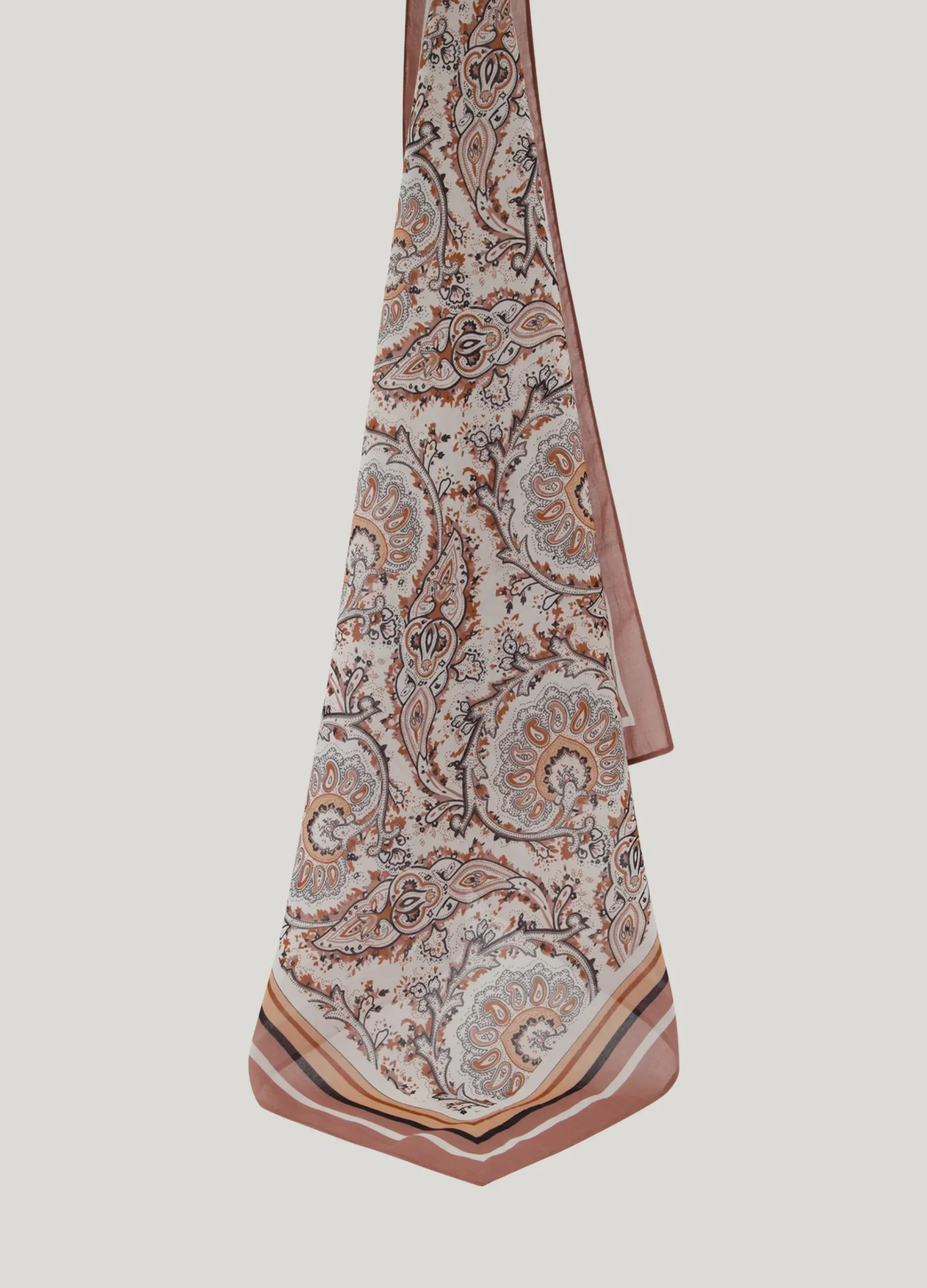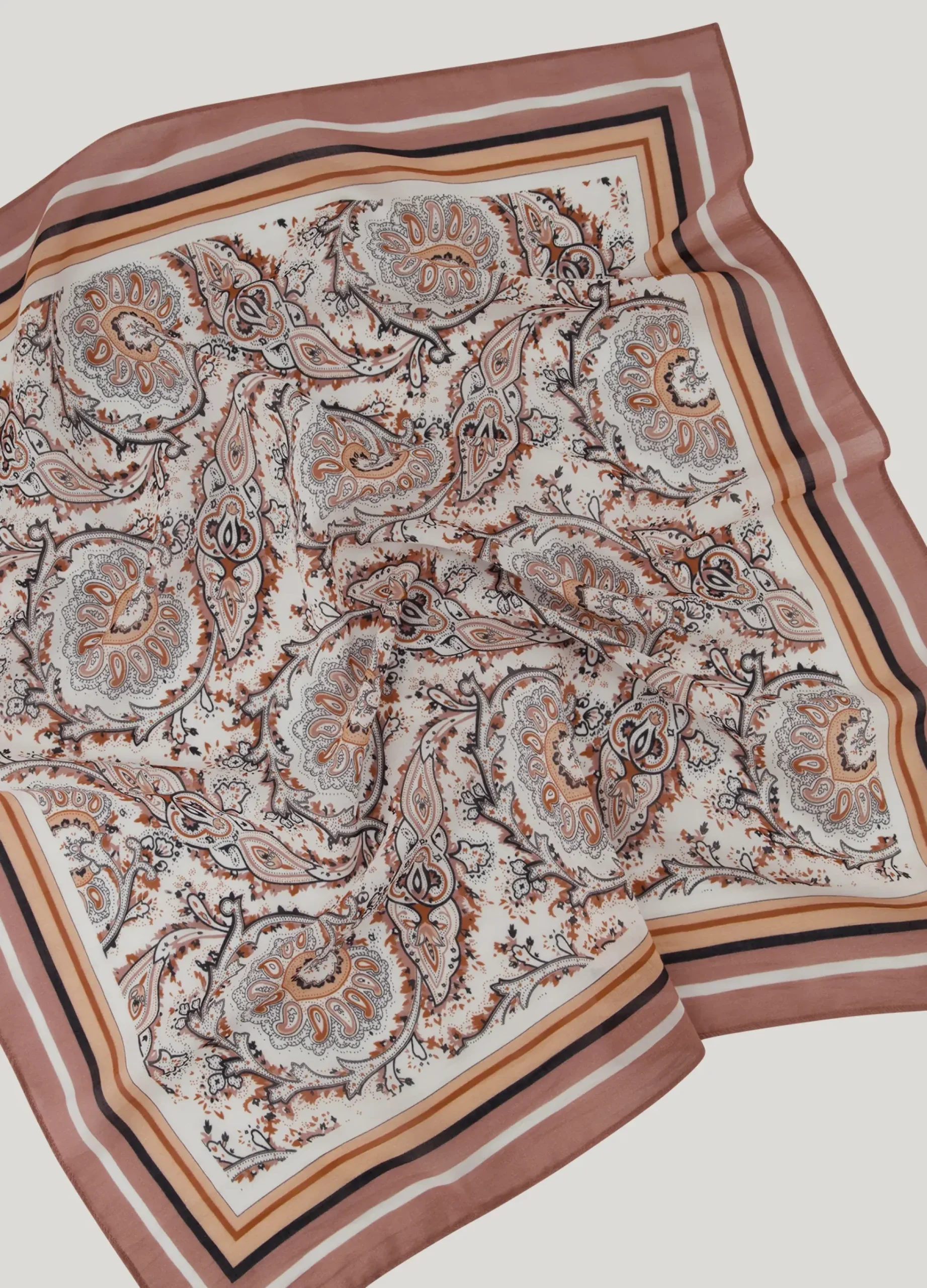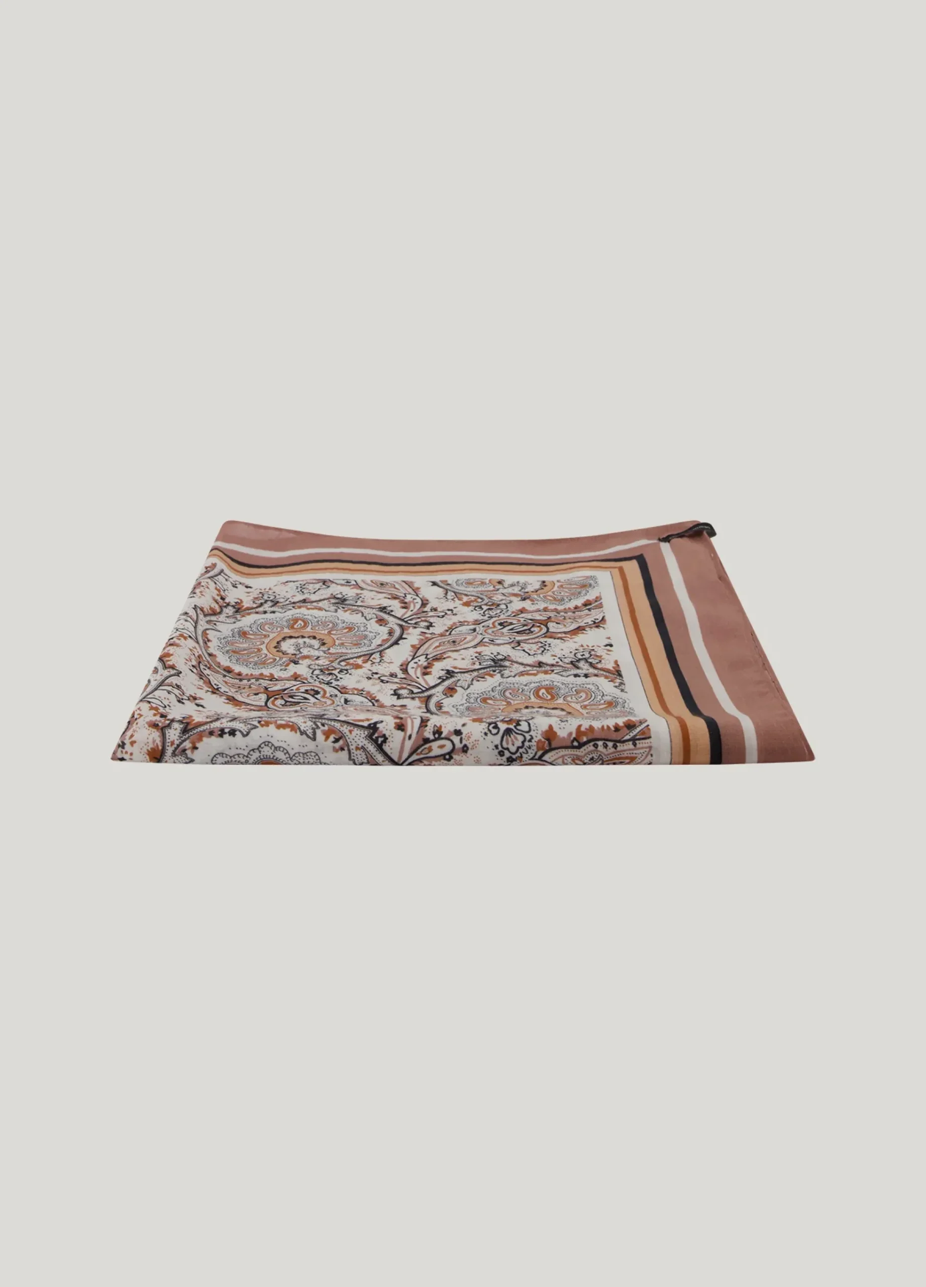 This square scarf is made of viscose. The colour scheme connects the colours of the collection. Ideal to wear as a belt, in your hair, around your bag or around your neck as an additional accessory.