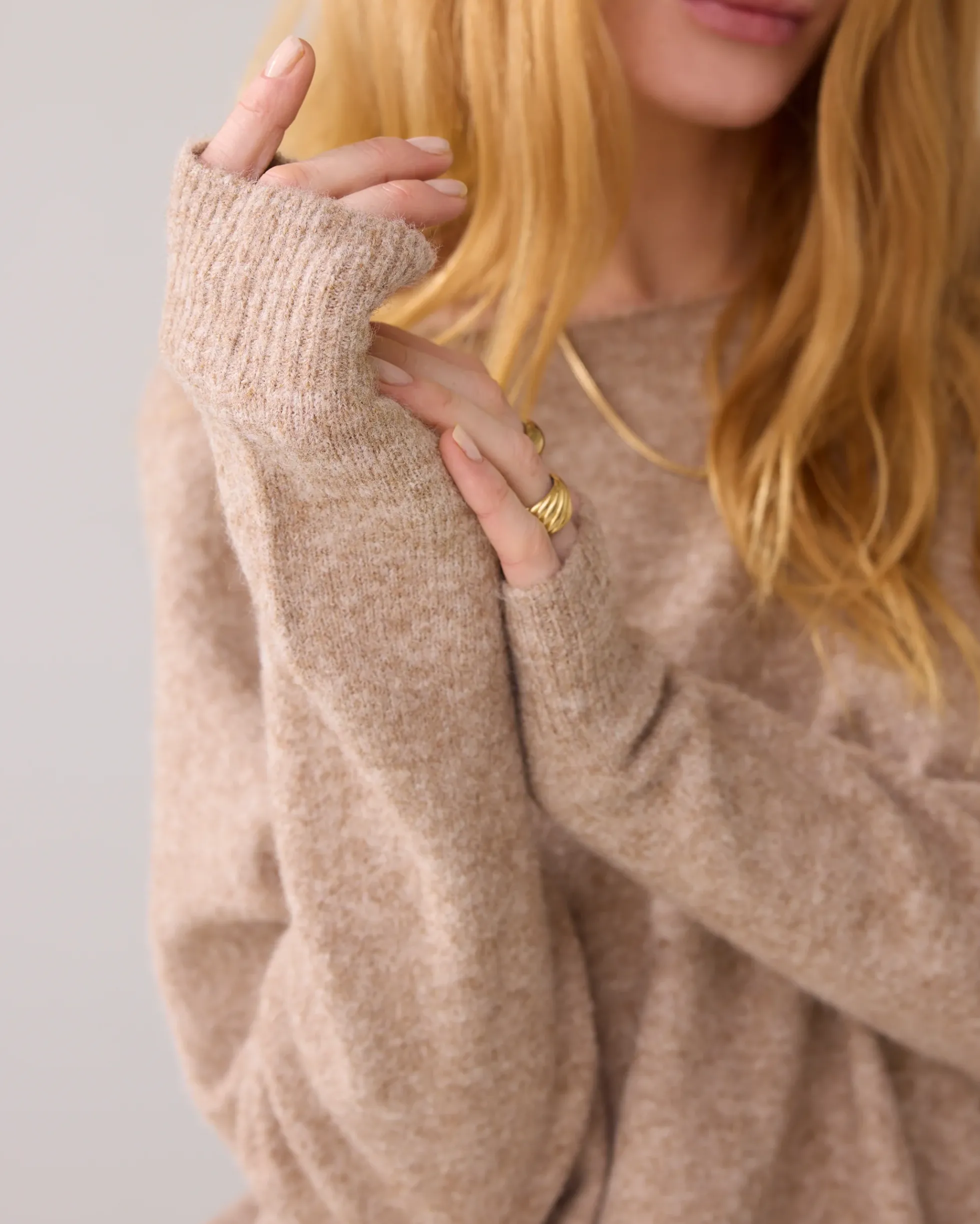Wide boat-neck jumper with a generous fit on the body, knitted in a yarn blend. The sleeves have a regular fit.