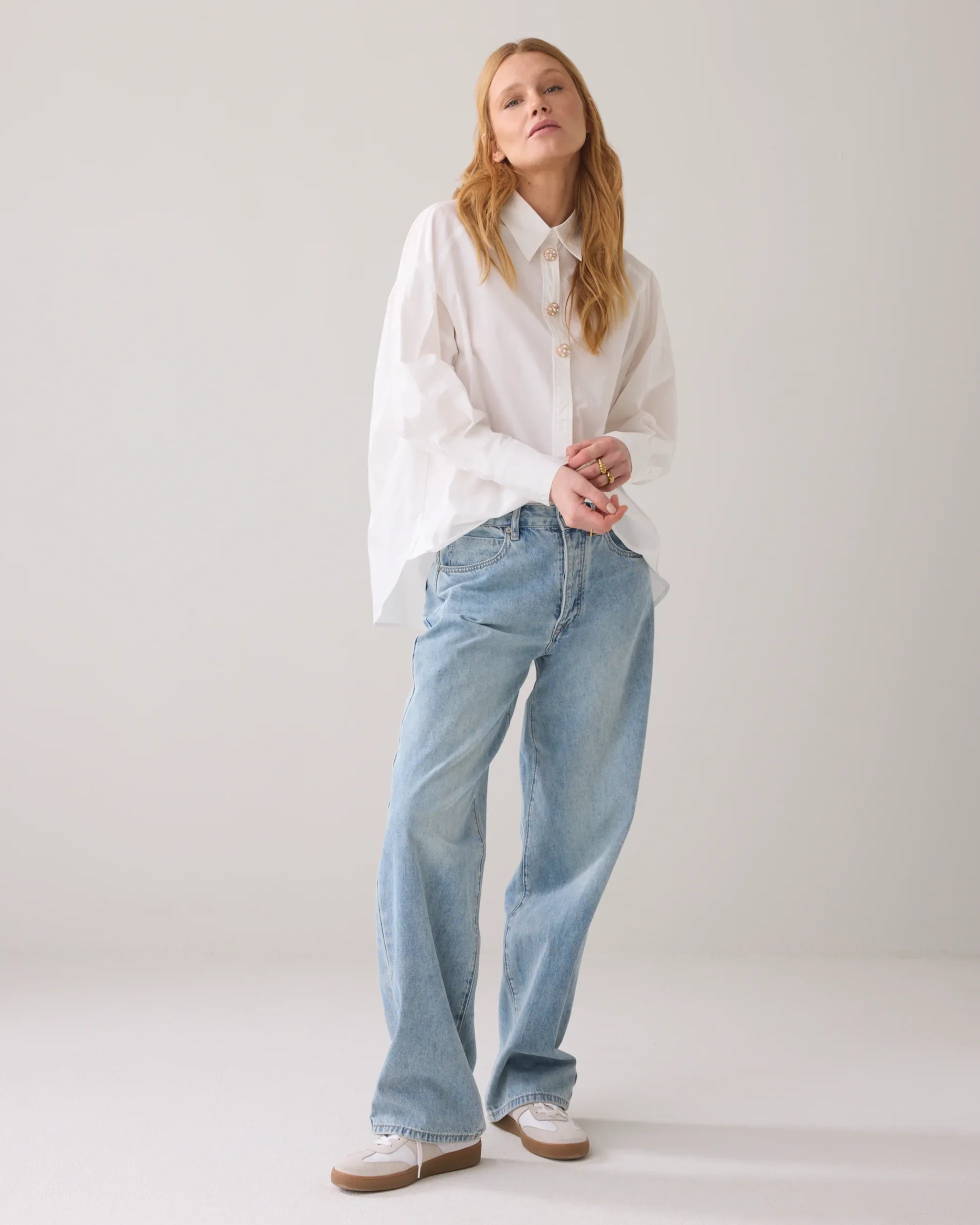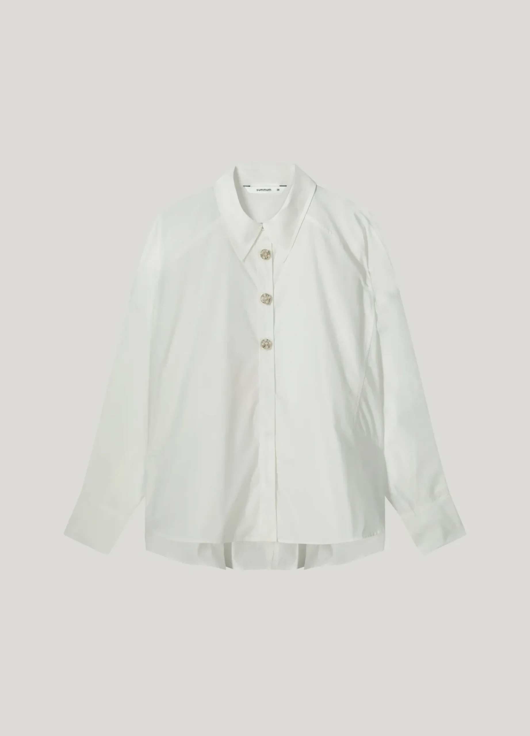 This blouse has long sleeves and is finished with fancy buttons and an invisible press-stud fastening. The cotton fabric features a comfortable fit and stylish look.