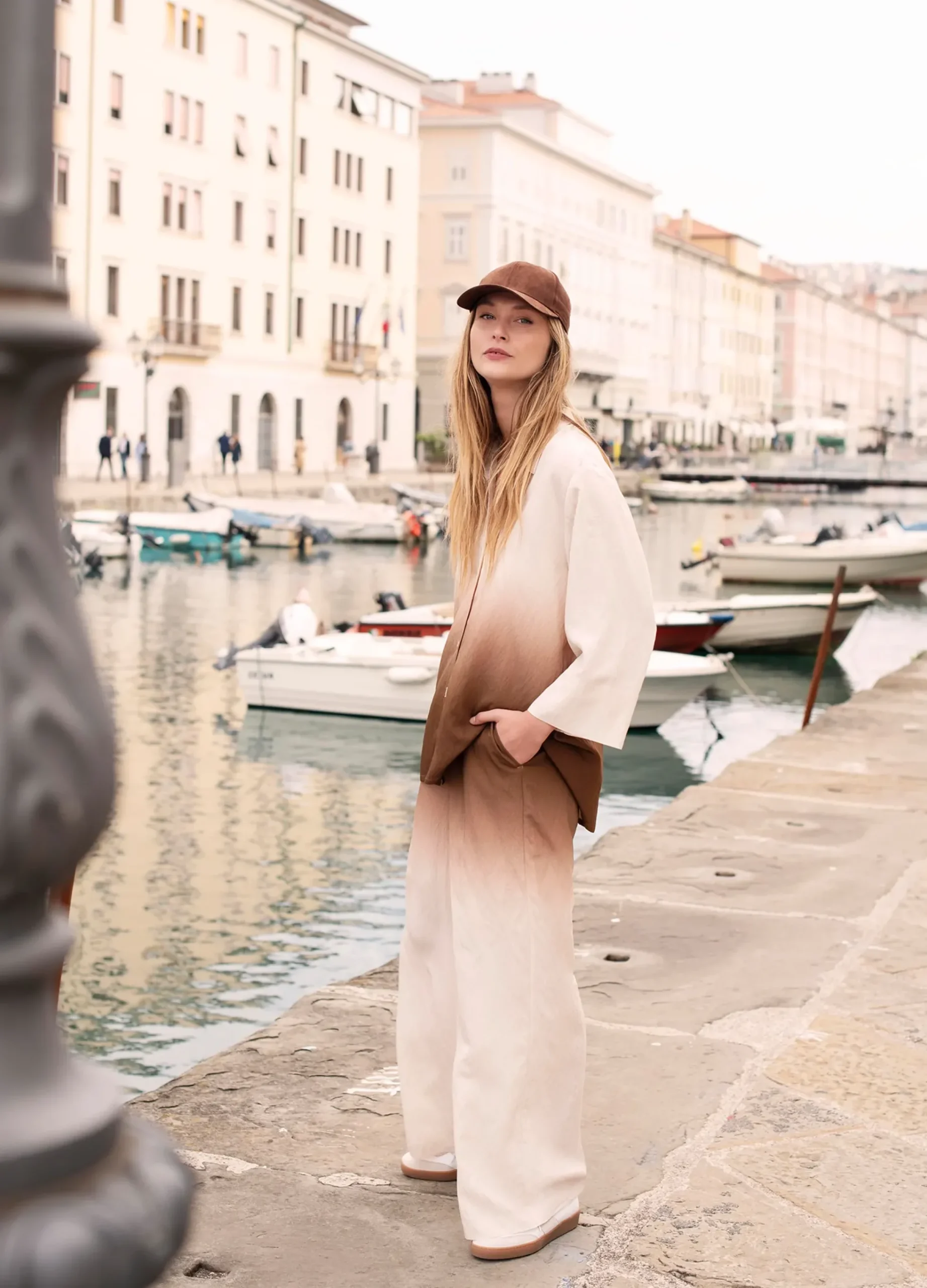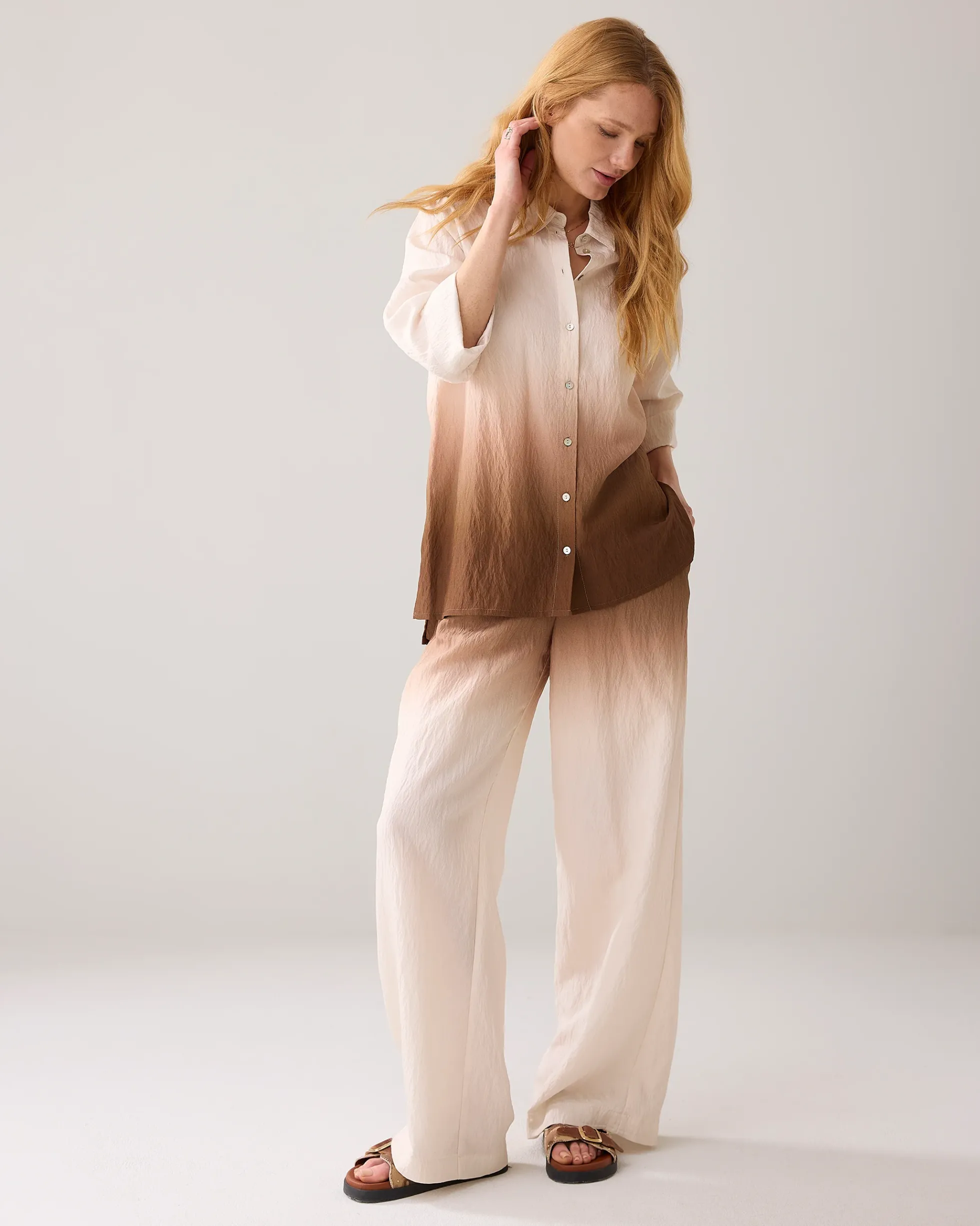 Made from flowy viscose, these loose-fitting trousers have straight, wide legs. The trousers have a dip-dye print and tone-on-tone Summum elasticated waist. Perfect to combine with the dip-dye print blouse.