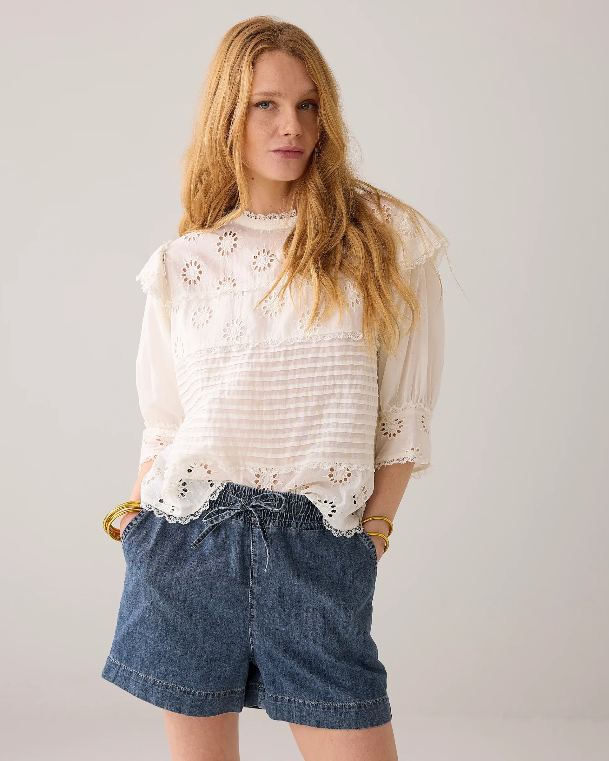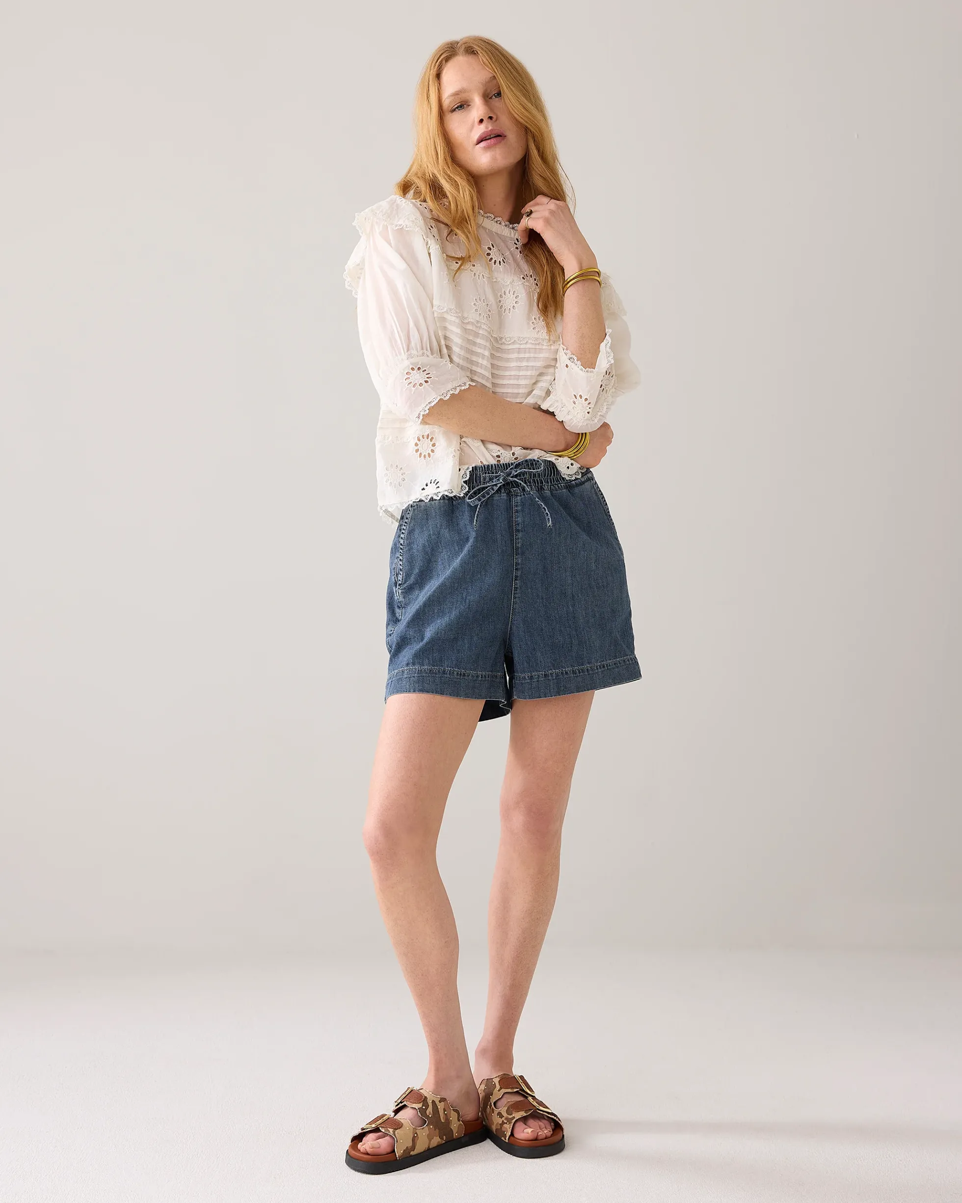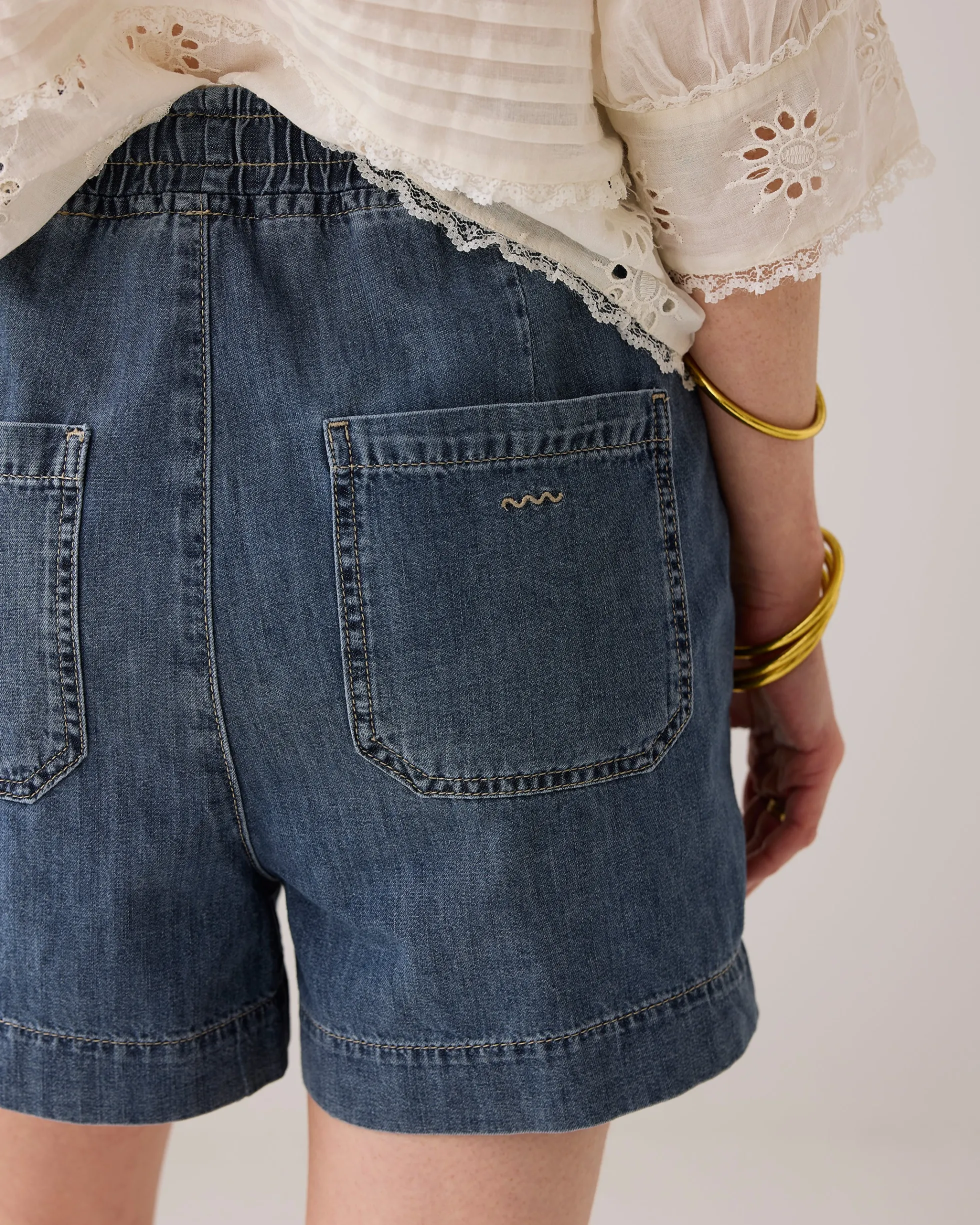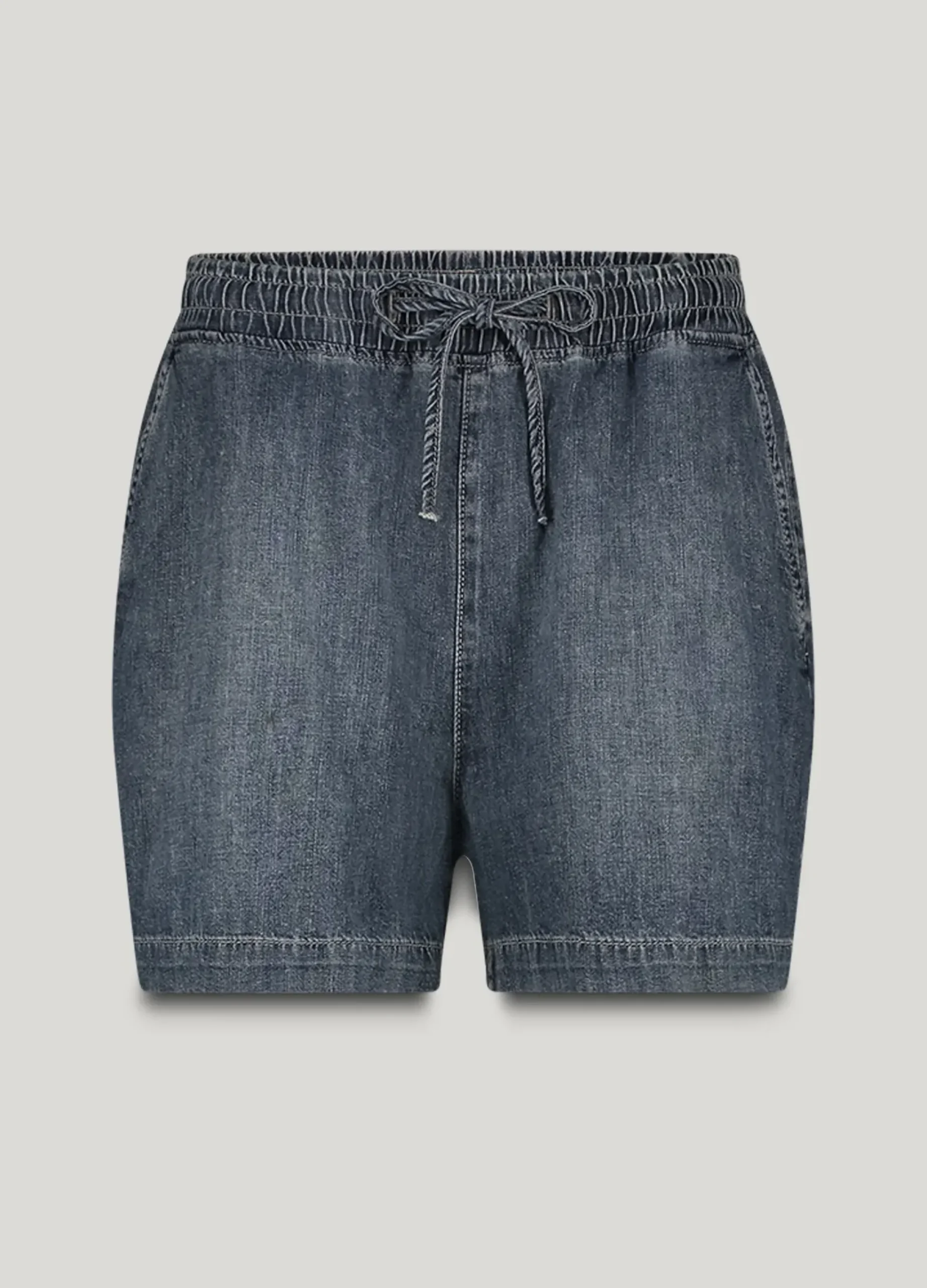These lightweight cotton denim shorts have a relaxed fit and an elasticated waistband with a drawstring. The shorts have a stonewash finish and jeans pockets.
