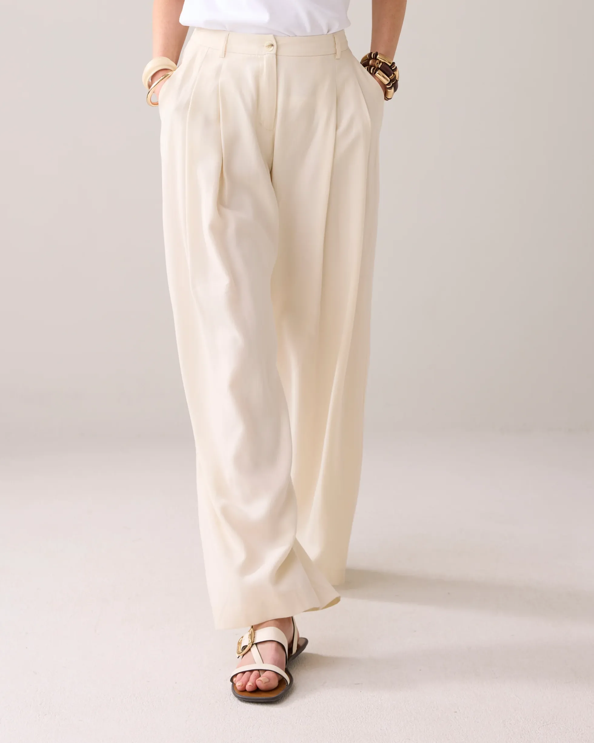 These long trousers are made from supple Tencel and have a relaxed fit. The elasticated back waistband and pleats at the front create a flattering silhouette.