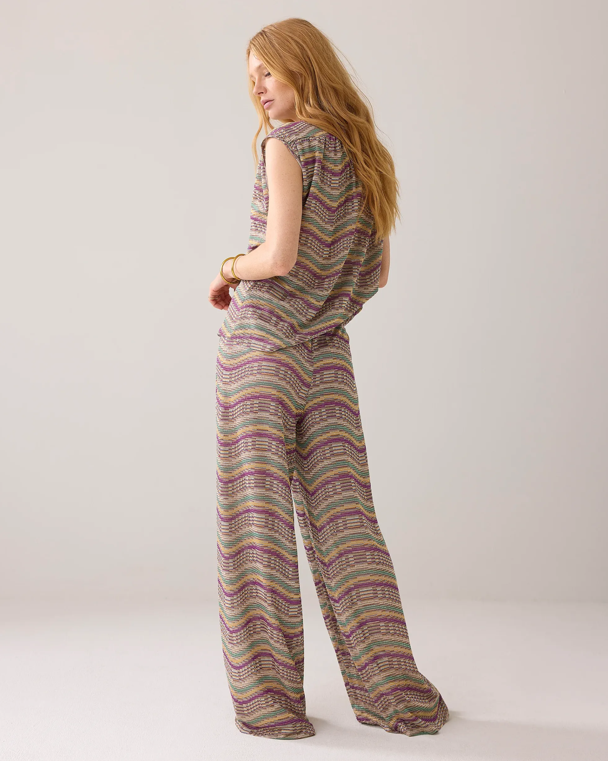 Festive trousers with extra-wide legs, made from an Italian jacquard fabric. The trousers have a comfortable elasticated waist and slit pockets.